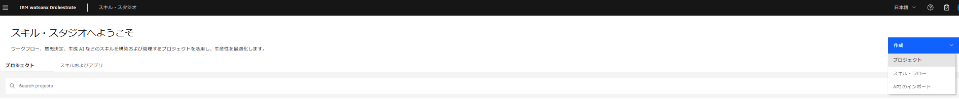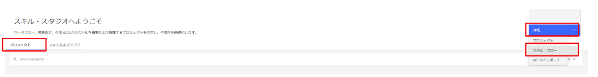 - 「プロジェクト」を選択し「作成」から「スキル・フロー」をクリック