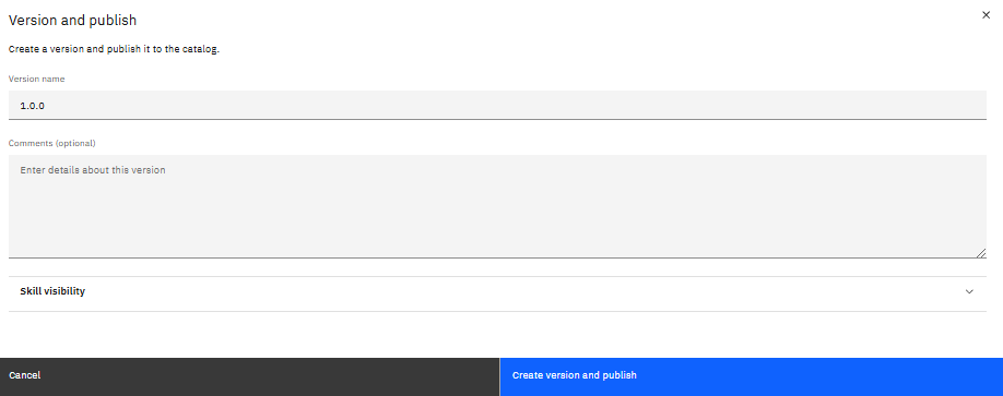 - 表示された「Version and publish」画面にて「Version name」に任意のバージョン名を入力し、「Create version and publish」をクリック