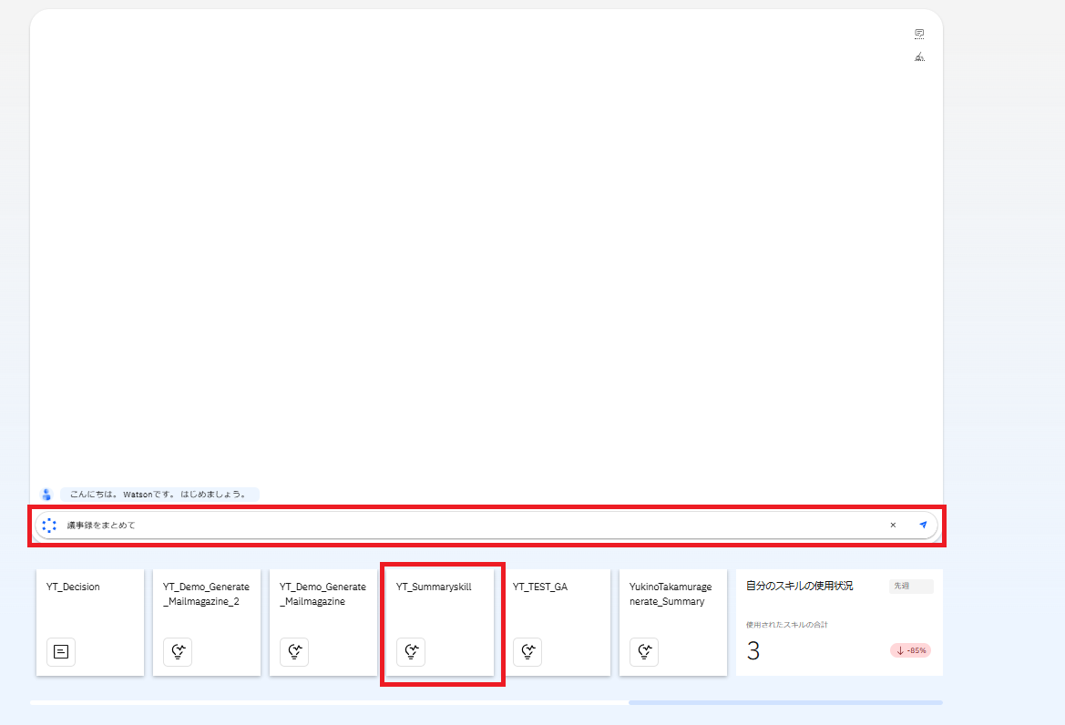 以上でスキルを実行する準備が整いました。早速チャットから実行してみましょう。