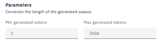 当検証では最小値 “1”、最大値 “3000” にしてトークンを設定し、出力の長さを調整します。(最大値は言語モデルによって異なる)