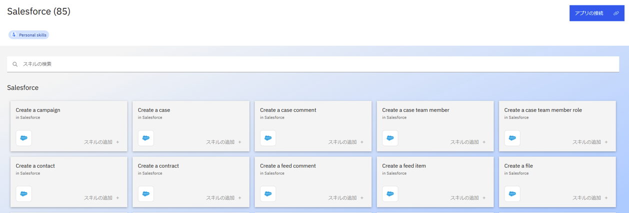 - スキルカタログを選択し、Salesforceのタイルをクリック