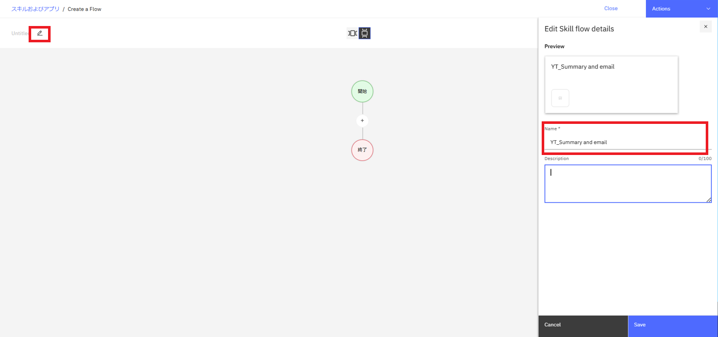 - 右側に任意のスキルフロー名を入力し「Save」をクリック