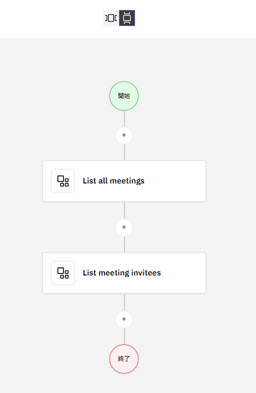 当検証では会議情報をリストする「List all meeting」とその会議情報から参加者のメールアドレス情報を取得する「List meeting invitees」を追加します。