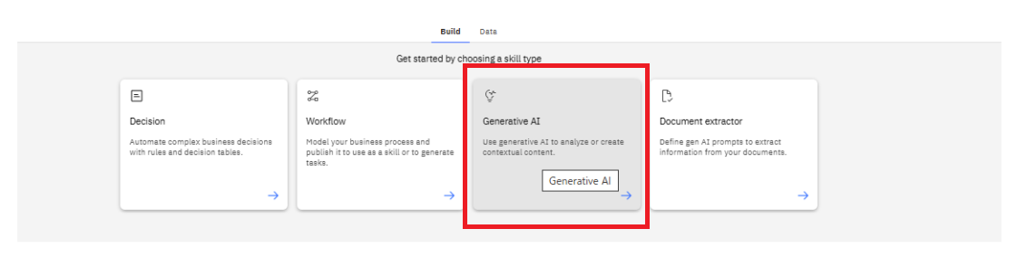 - スキルタイプ選択画面にて「Generative AI」をクリック