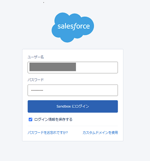 別ウィンドウに Salesforceログイン画面が表示されます。