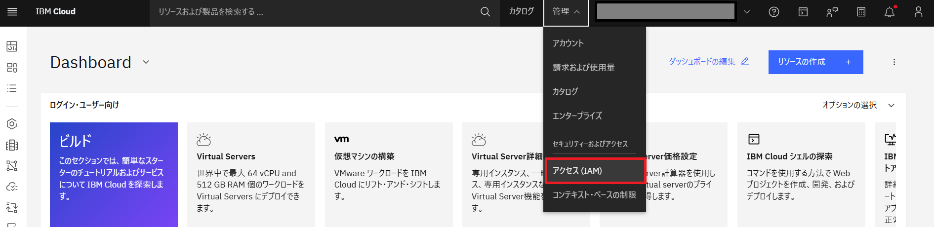- IBMid で IBM Cloud へログインしホーム画面へアクセス