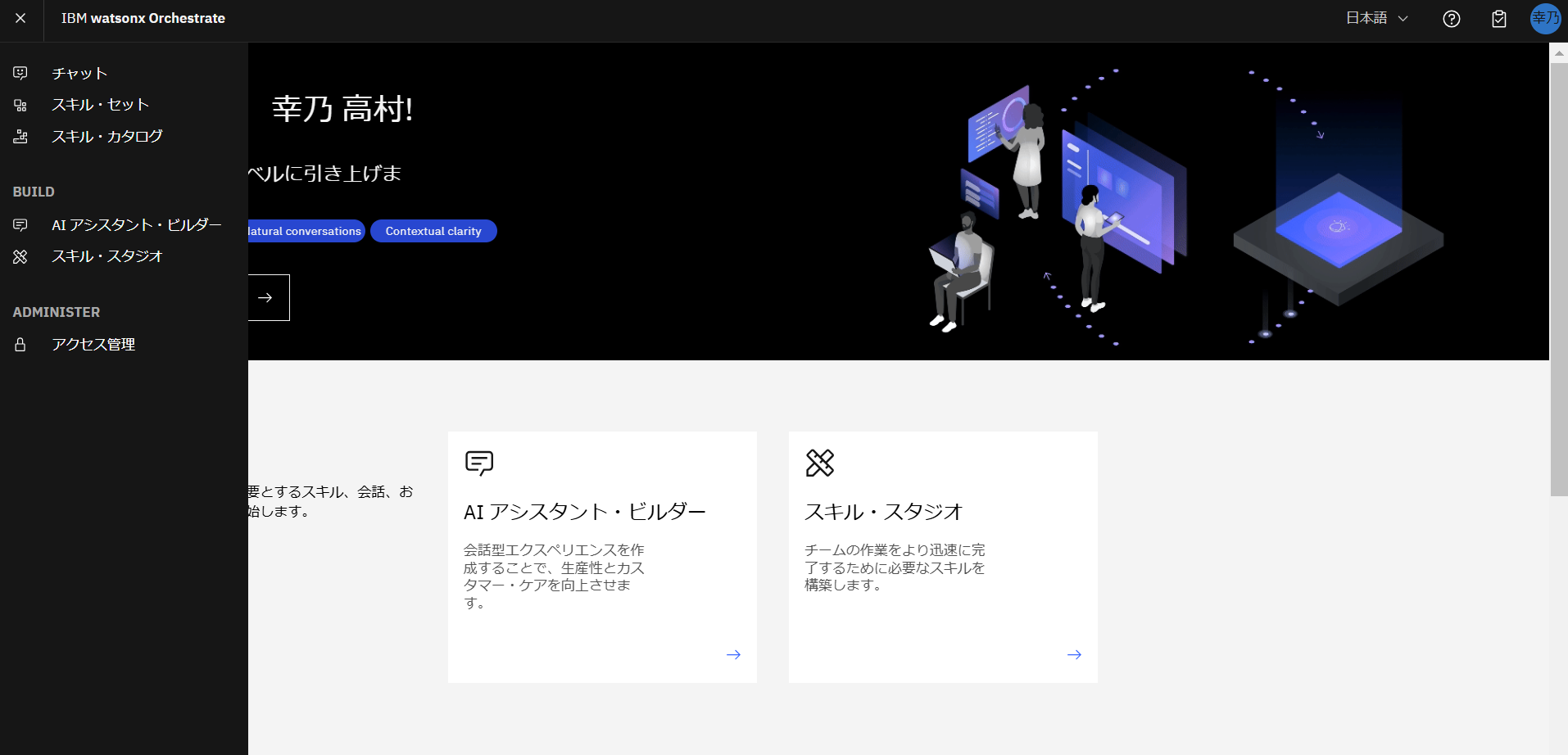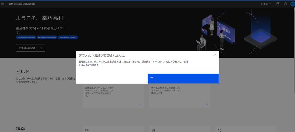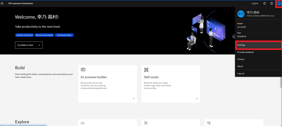 watsonx Orchestrate の UI画面が表示されました!