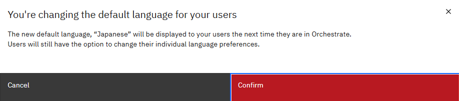 - デフォルト言語変更確認画面で「Confirm」をクリック