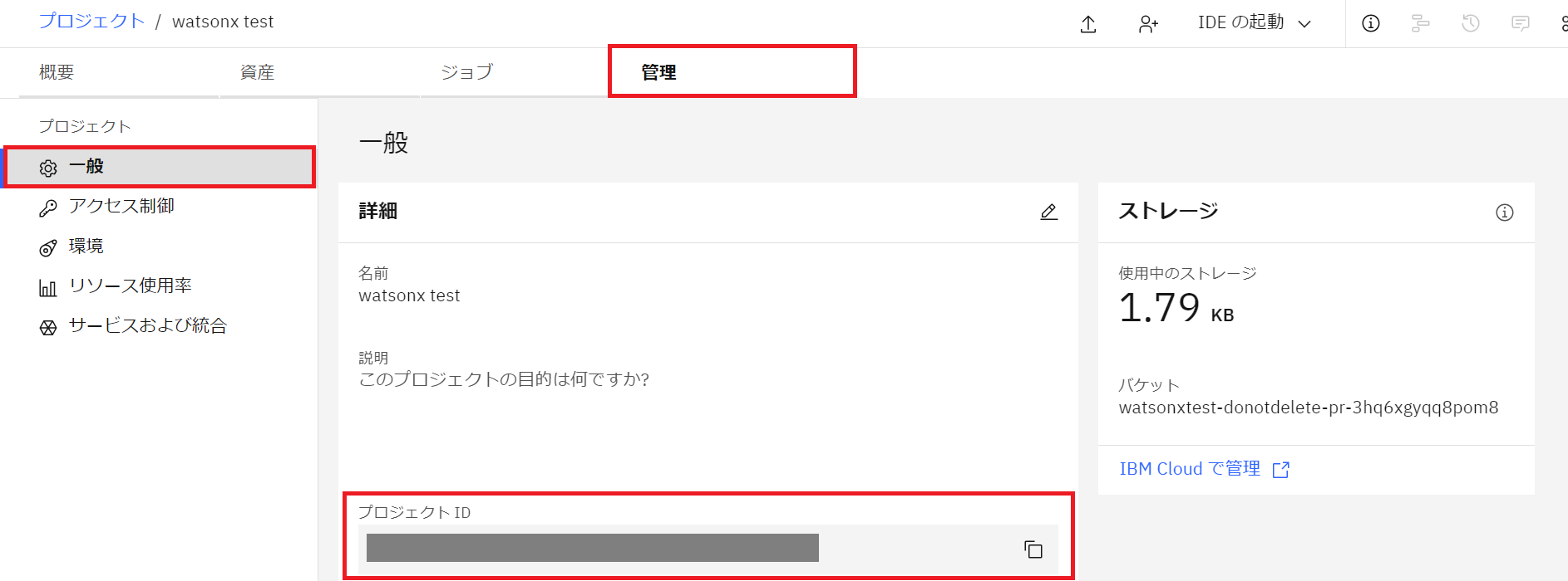次に、watsonx.ai のプロジェクトIDを取得します。
