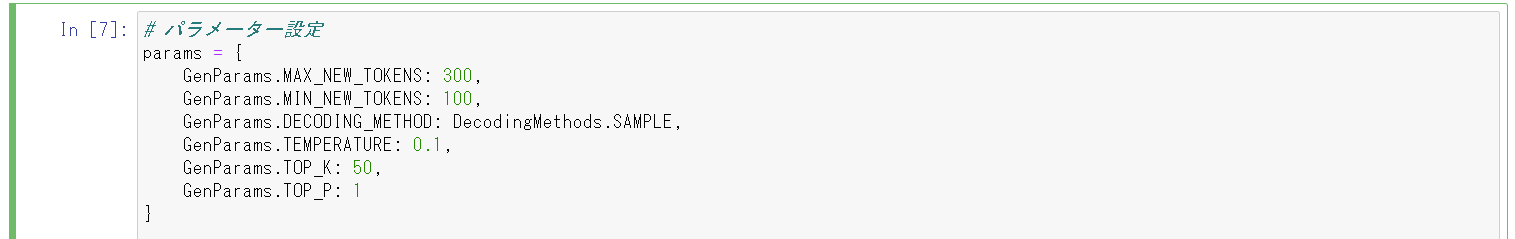 - まず、使用する言語モデルのパラメータを設定します。