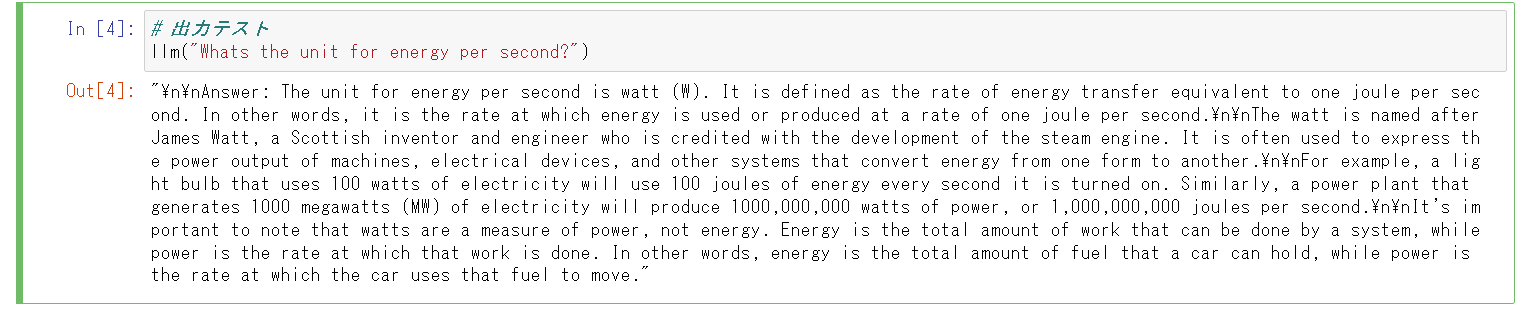 - 質問をしてみたところ、正常に回答が返ってきました。
