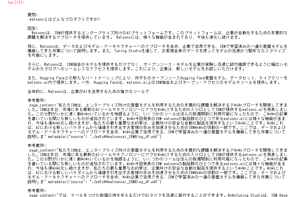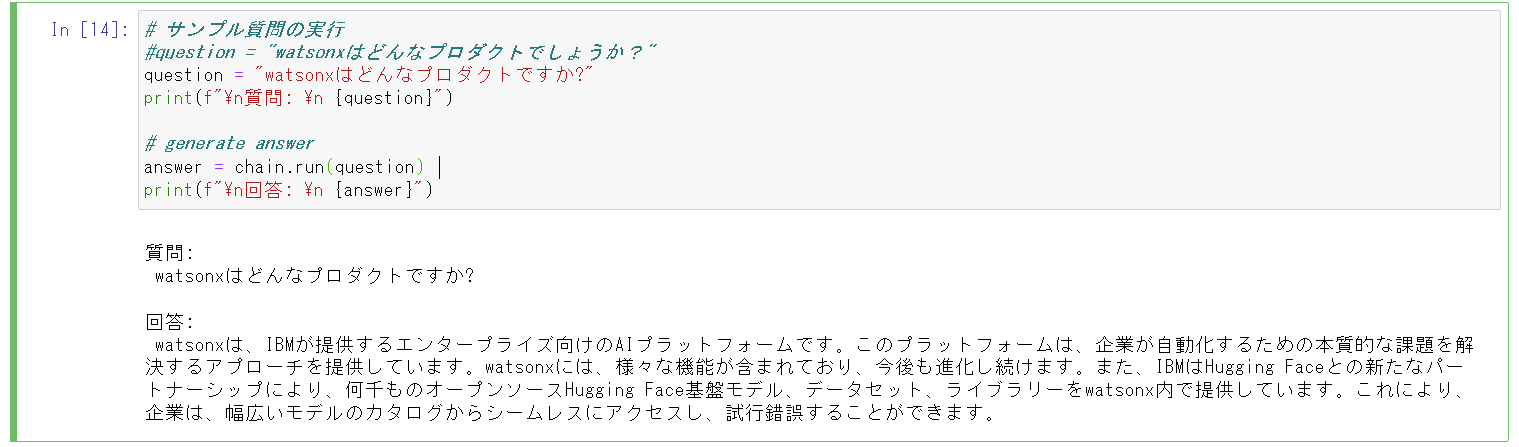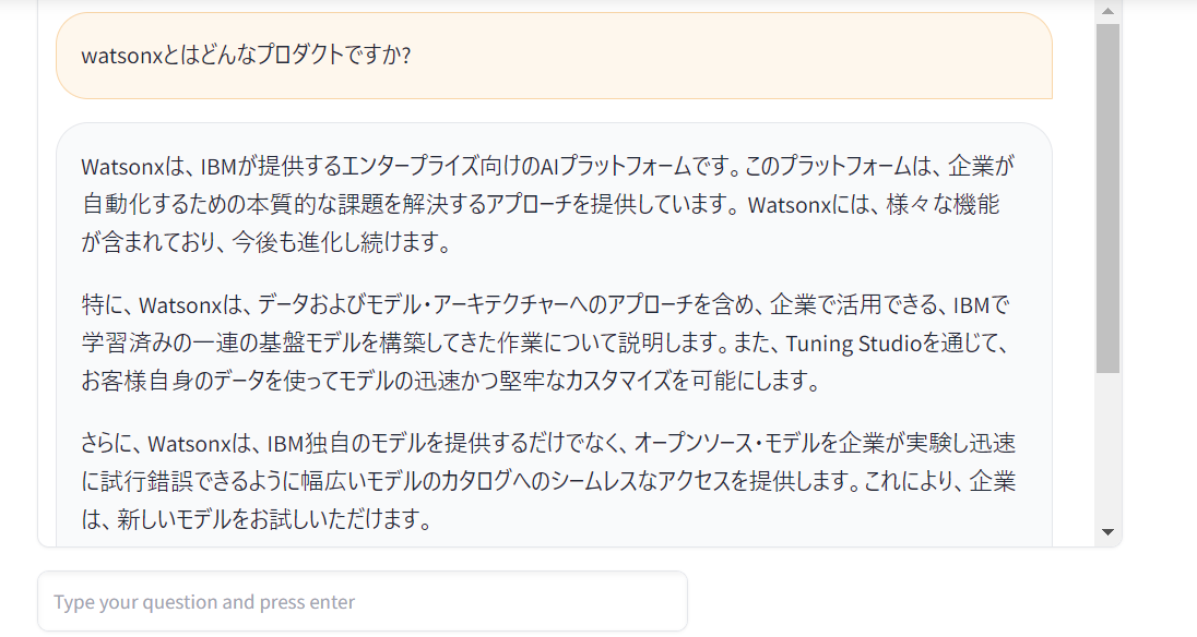 - watsonx.aiが回答を生成し、回答