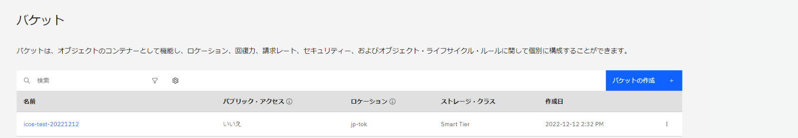 ・IBM COS にバケットを作成します。