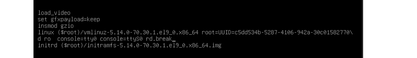 レスキューモードは RHEL の Customer Portal「23.3. 起動時のrootパスワードのリセット」の手順を参考に行いました。ここでは手順は記載しませんが、Customer Portal の手順で問題なくパスワード設定ができます。システム再起動からすばやく [e]キーを押して起動プロセスを中断しなければいけないので目を凝らして行いました!