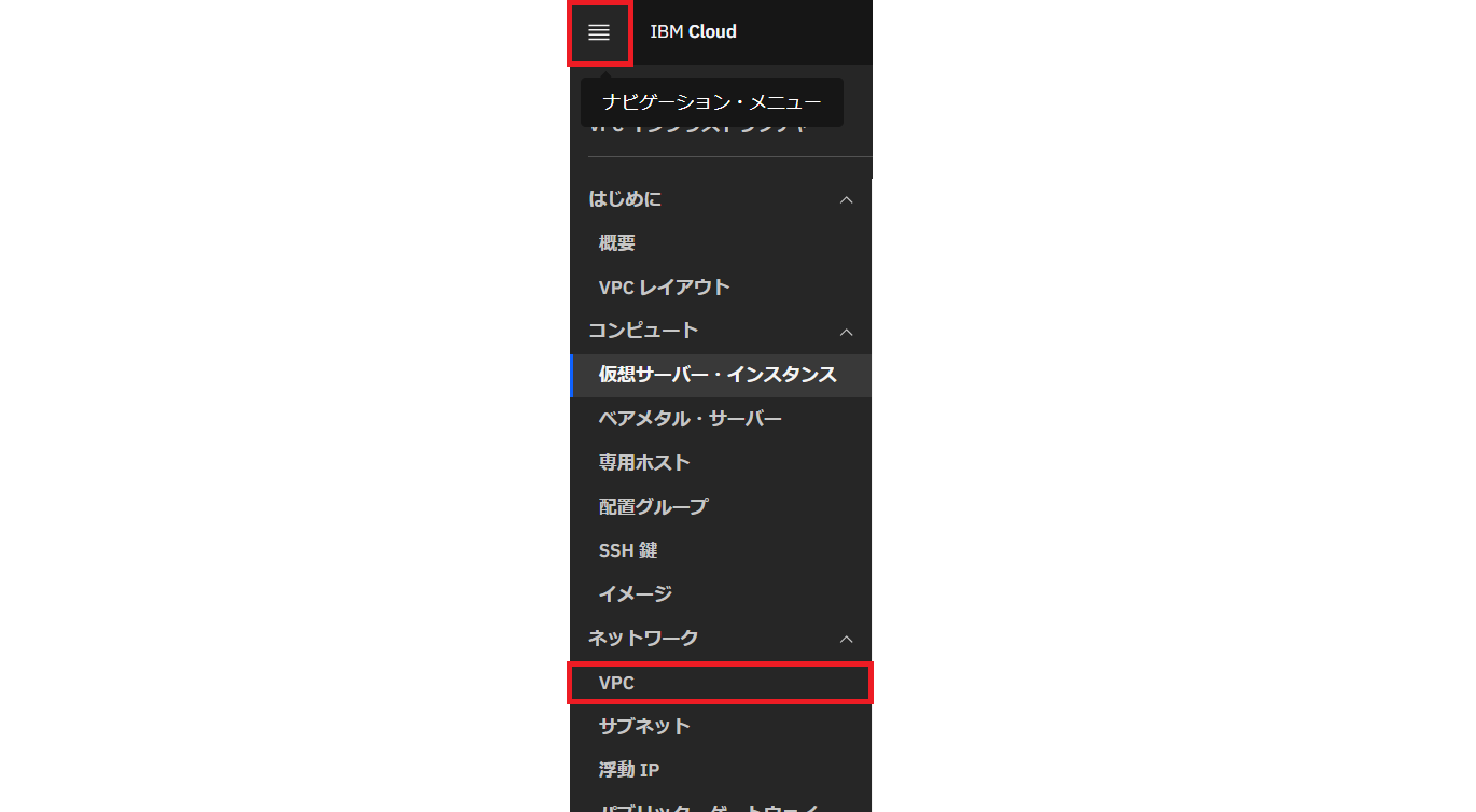「ナビゲーションメニュー」から「VPCインフラストラクチャー」を選択します。
