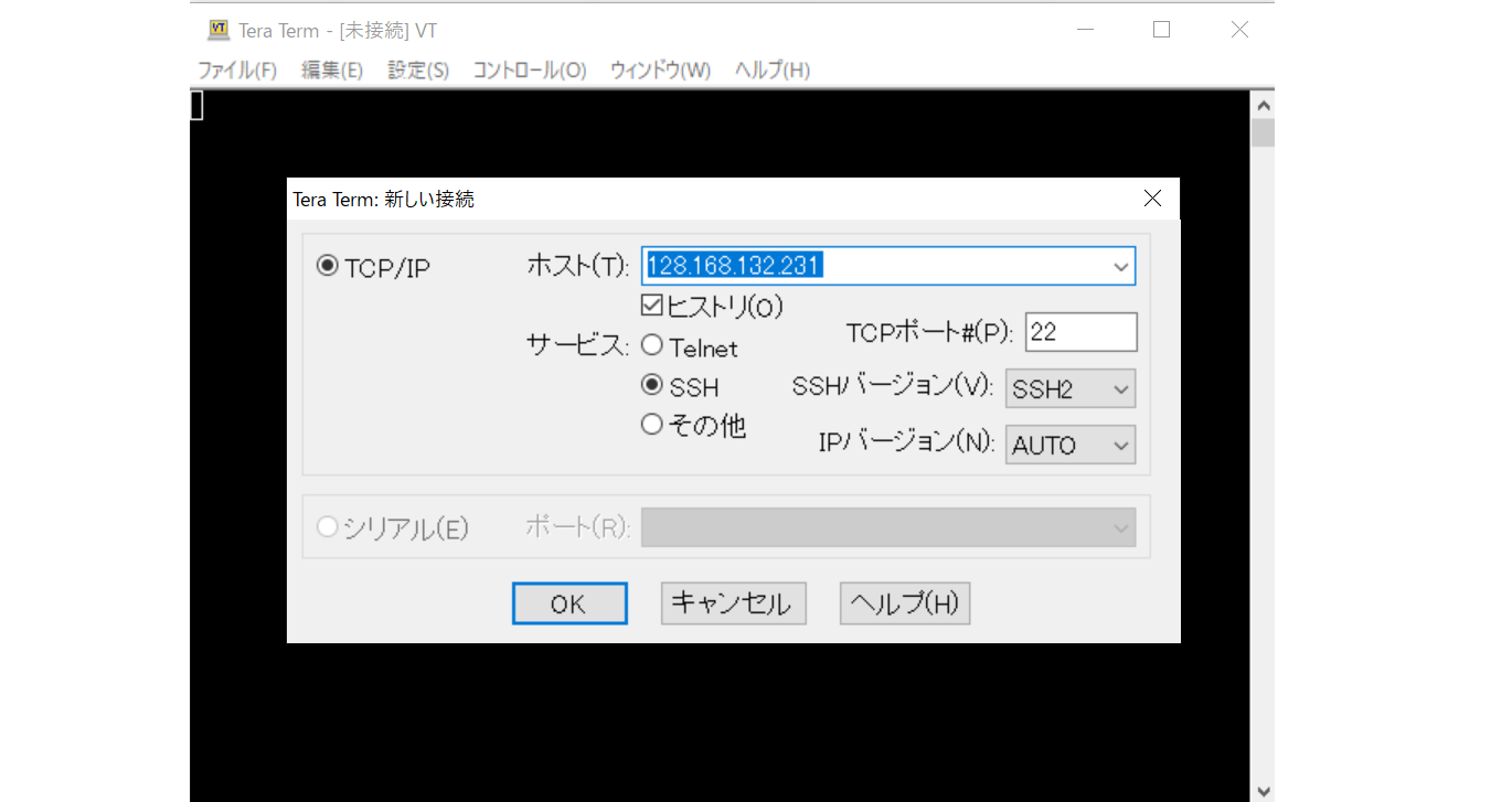 ・作成したVSI(RHEL)に Tera term を使用し SSH でログインします。