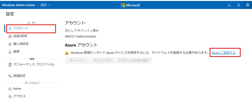 WACサーバーでAzureと連携させるために、まず最初にAzureにWACサーバーを登録します。