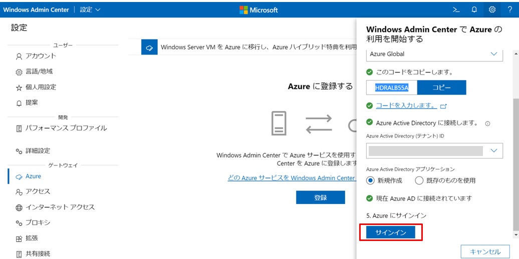 1. AzureにWindows Admin Centerを登録