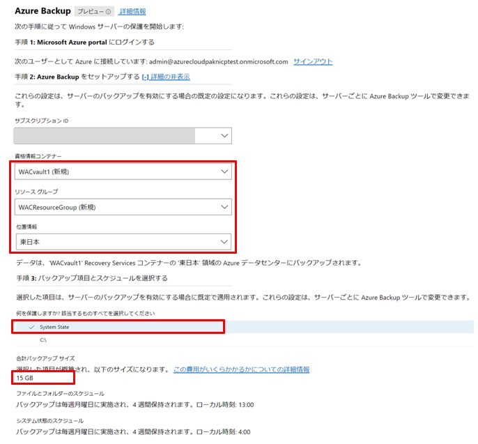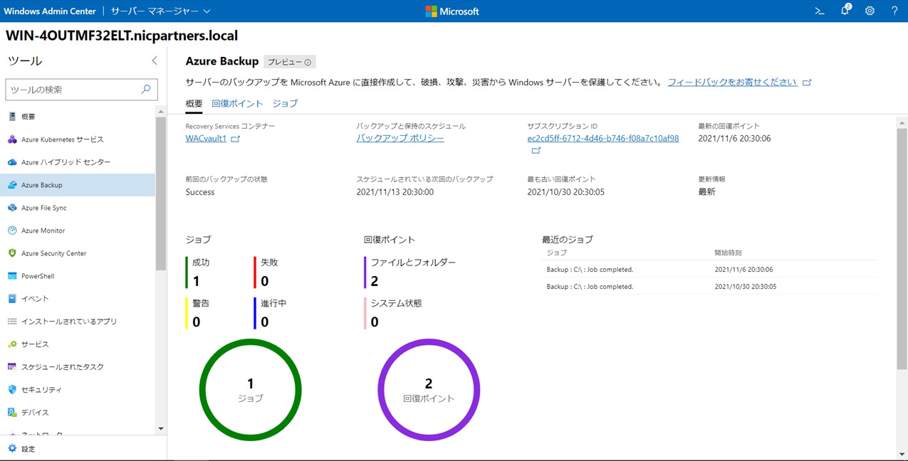 以上でWACでのAzure Backup設定が完了しました。