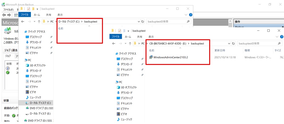 次にリストアしてみました。リストアはWACサーバーからでは無く、Azure Backupアプリから行います。