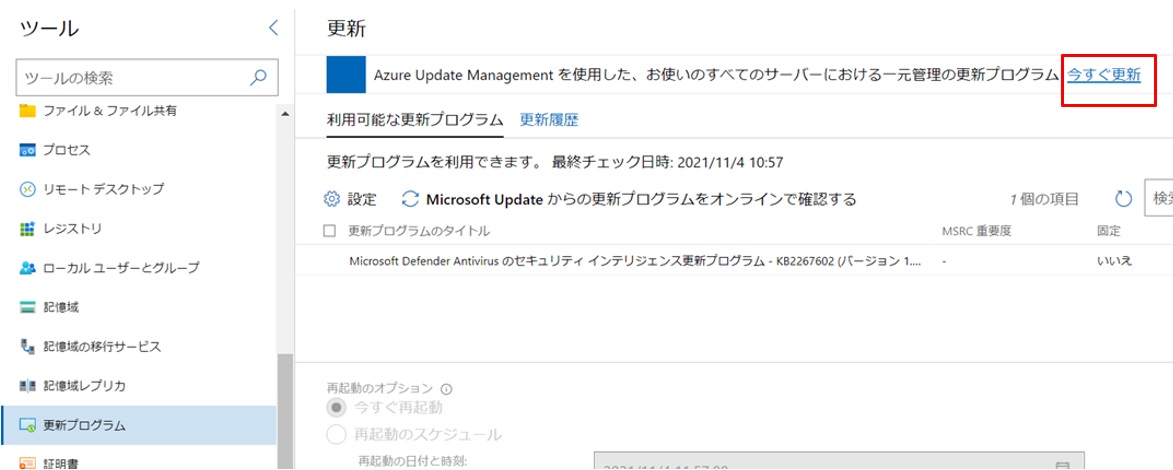 まず、WACサーバーで、連携させる対象のサーバーの「更新プログラム」-”今すぐ更新”をクリックして設定します。