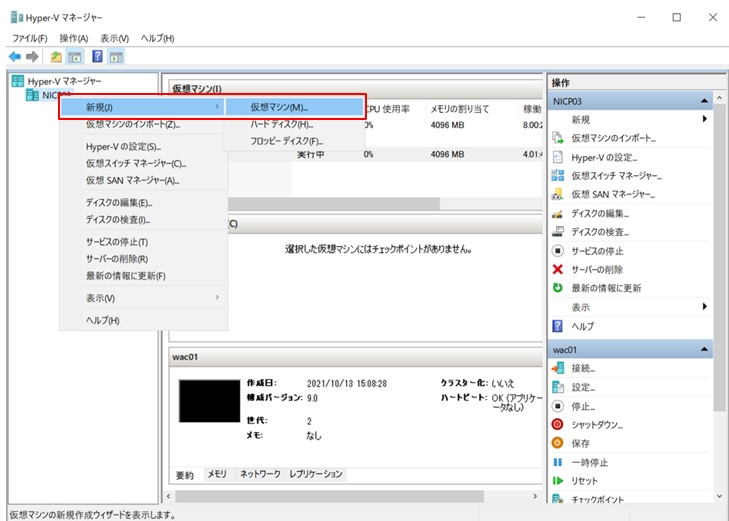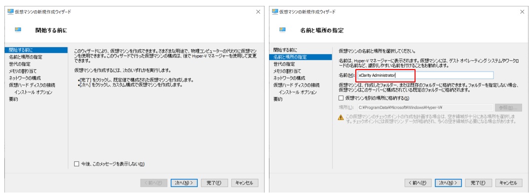 次にHyper-VマネージャーでLXCA用仮想マシンを作成します。仮想マシンの新規作成ウィザードが始まります。