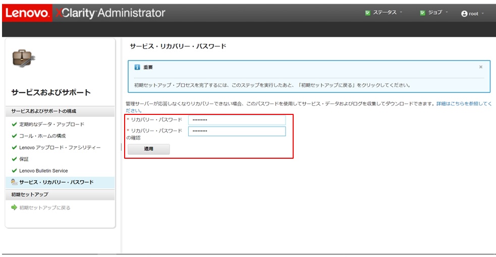 6つ目の[サービス・リカバリー・パスワード]設定画面です。リカバリーの際に利用するパスワードを設定します。
