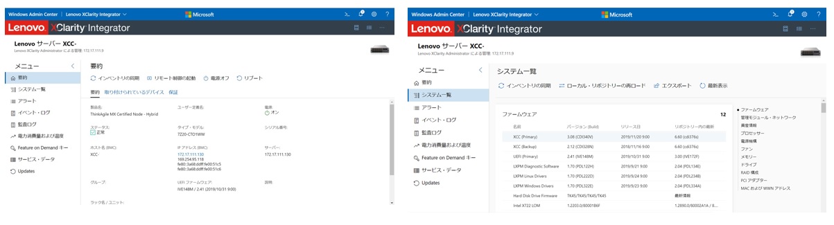 WAC対応のLenovo XClarity Integrator(以下、LXCI)を利用することで、WAC画面からLXCAの管理情報にアクセスすることができるようになります。これでWACからハードウェア管理もできるようになります。