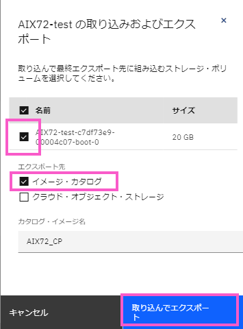 ・「カタログ・イメージ名」に任意の名前を入れます。「AIX72_CP」という名前にしました。