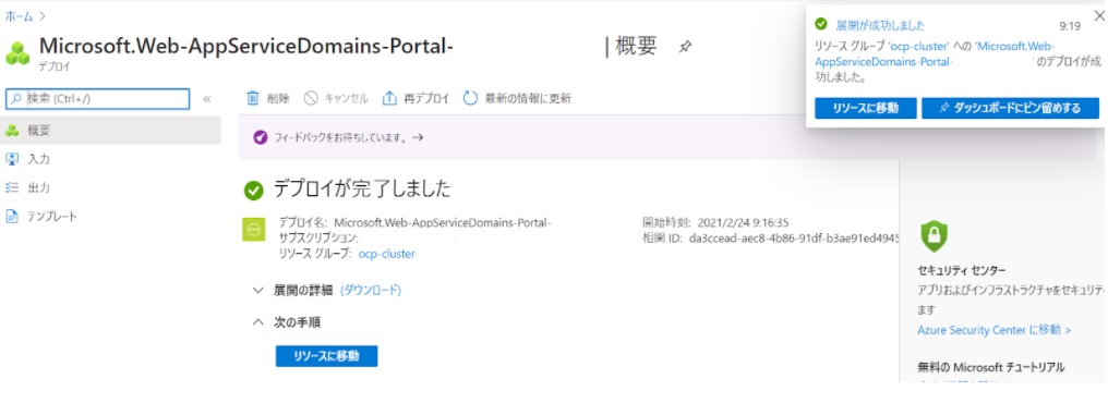原因は”Tokyo-to”と入力した箇所でした。一旦既に作成されていたリソースを削除し、再作成の際に”Tokyo”と入力することで無事ドメインが作成できました。以下は再作成で成功した画面です。