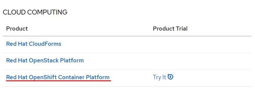 ・Red Hat Custmer Portalにログインします。「ダウンロード」をクリックし、次の画面で”Red Hat OpenShift Container Platform”をクリックします。