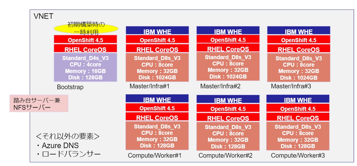 OCP4導入後にWSHEのコンポーネントを導入する予定のため、OCP4のバージョンは4.5を利用しました。(現在はOCP4.5~4.7までサポートされていますが、検証当時はOCP4.5のみサポートでした。)