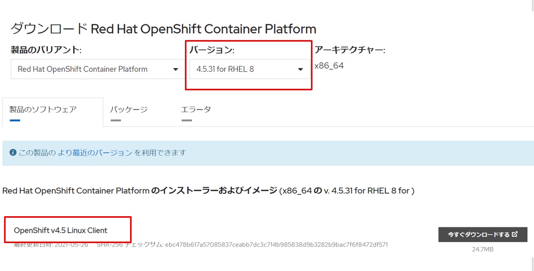 (1)OCP4.5インストールファイルのダウンロード