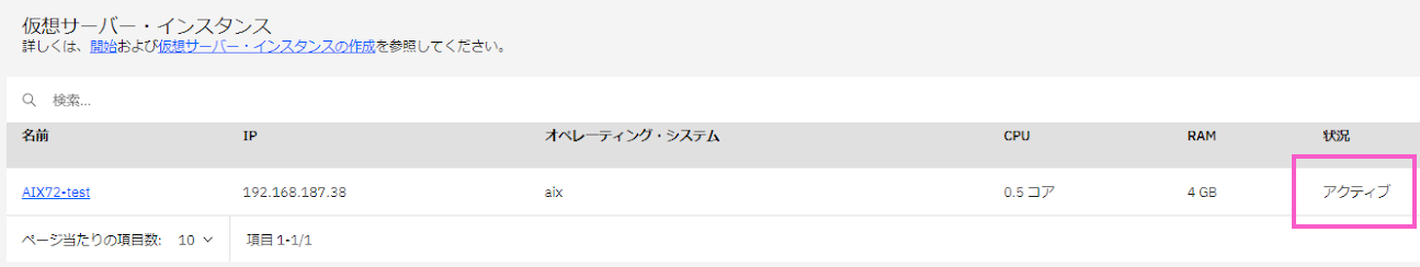 AIX環境が起動しているかは WEBのポータル画面で確認できます。