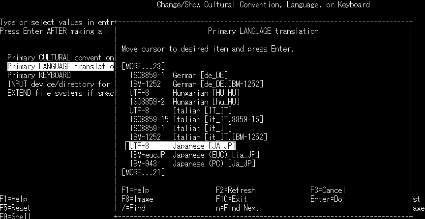 ・「Change/Show Cultural Convention, Language, or Keyboard」で Enter を押します。