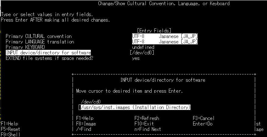 ・リストから「/usr/sys/inst.images」を選択し、Enter を押します。