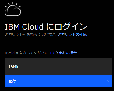 ・IBM Cloud へログインします。IBM Cloud の ID をお持ちでない方は新規登録が必要です。