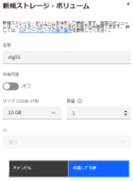 ・「新規ストレージ・ボリューム」をクリックします。