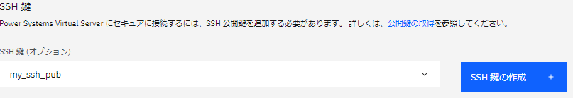 ・先ほど追加したSSH鍵「my_ssh_pub」が「SSH鍵(オプション)」リストに追加されたので選択し「SSH鍵の作成」をクリックします。