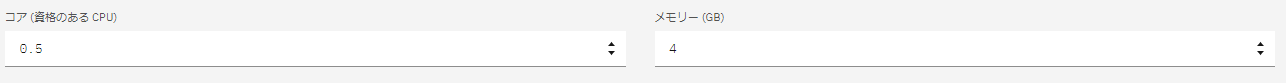 ・「コア」は「0.5」core、「メモリ」は「4」GBとします。