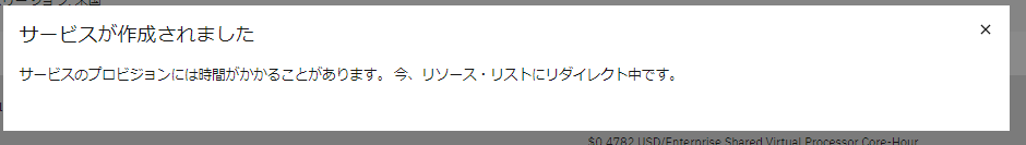 以下のメッセージが出力されますが、まだサービスの作成は完了していません。
