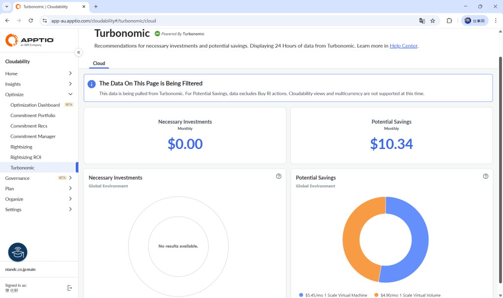 また、Turbonomicと連携することでCloudabilityからTurbonomicが計算した投資・コスト削減の情報も参照できるようになりました